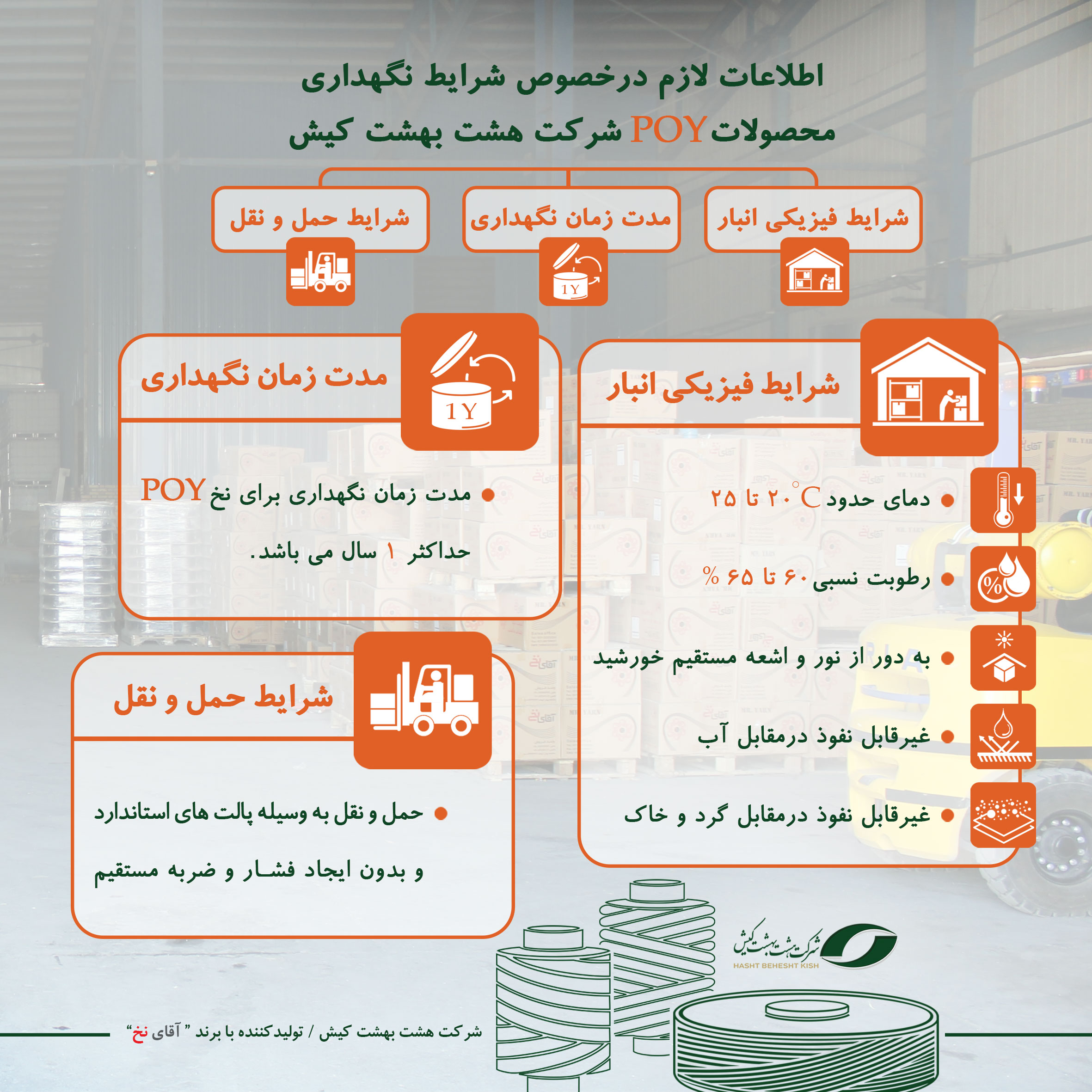 اطلاعات لازم درخصوص نگهداری محصولات POY شرکت هشت بهشت کیش: